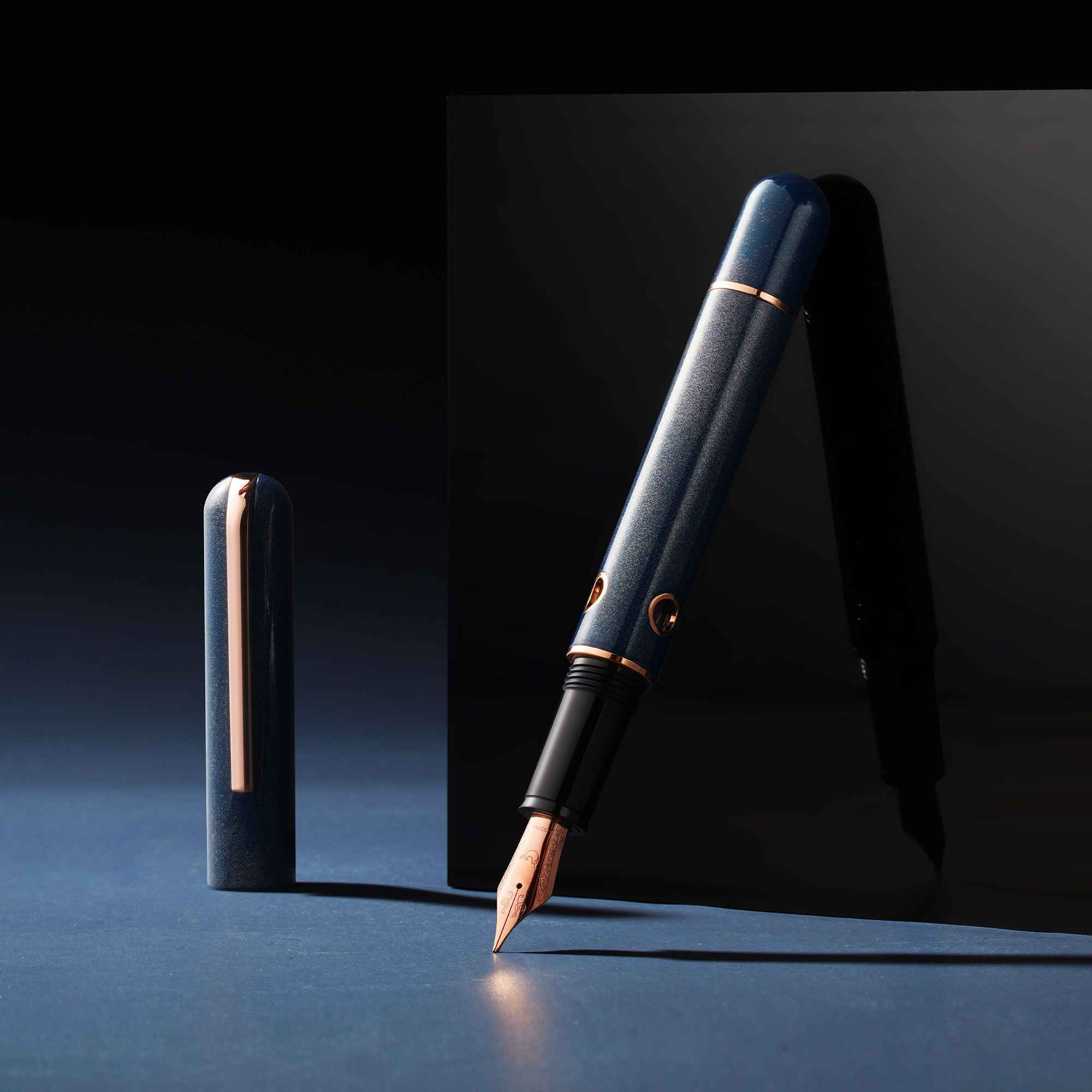 Il corpo in ebonite è rivestito da autentica lacca Urushi applicata e lucidata a mano, creando una superficie compatta, ricca di sfumature e naturalmente brillante. La variante Lapis richiama il blu intenso della tradizione urushi, elegante e senza tempo.