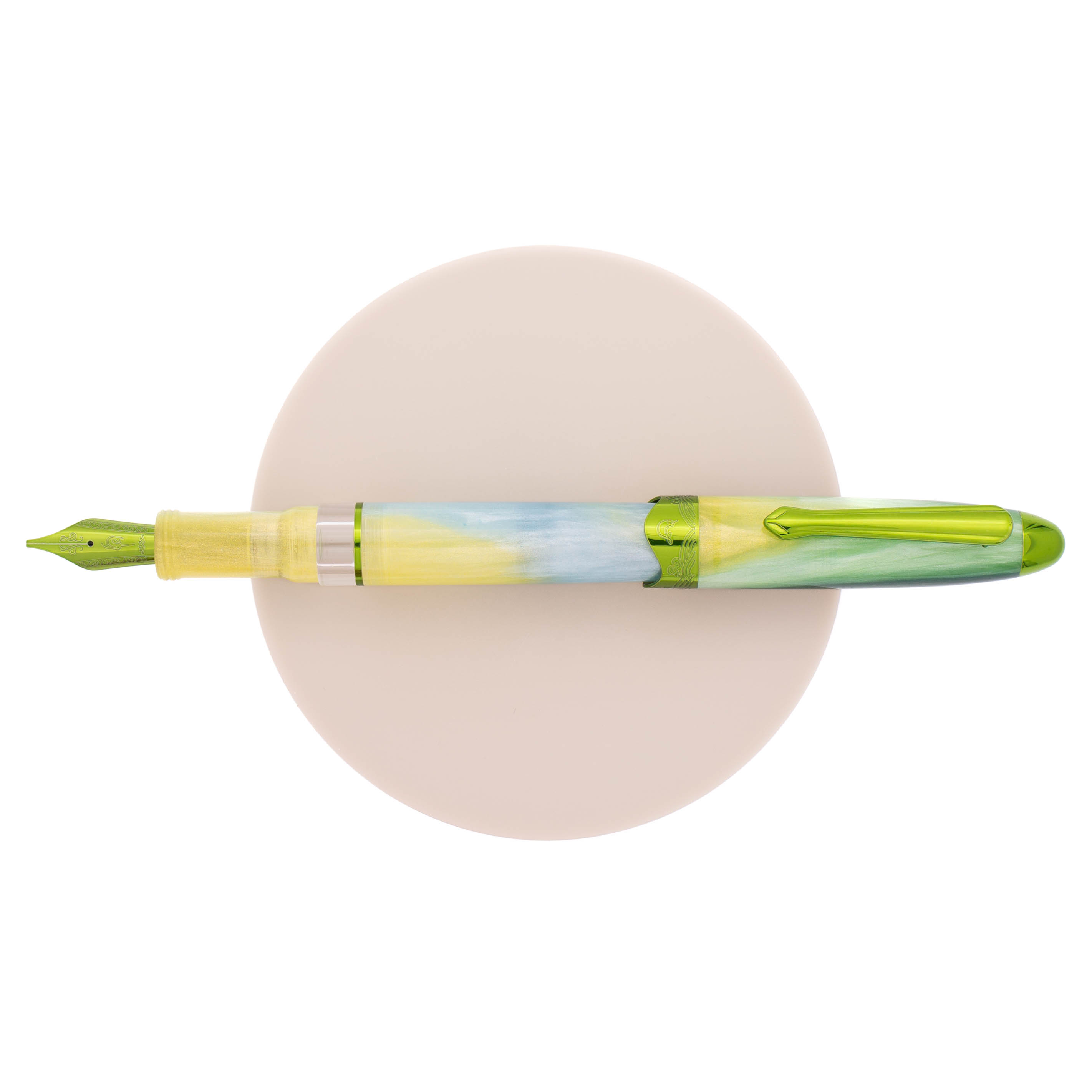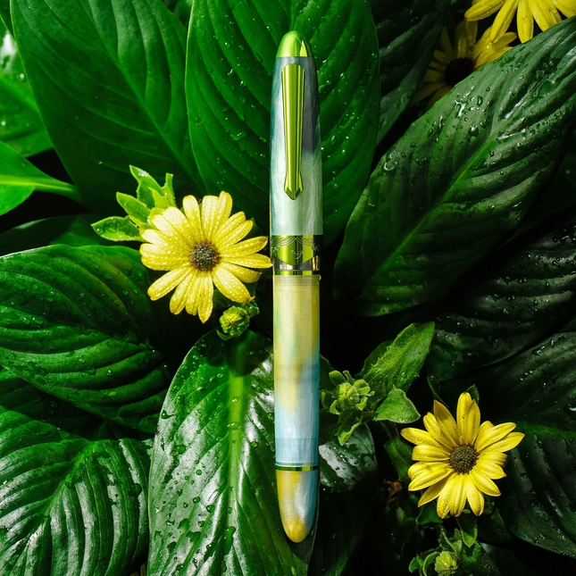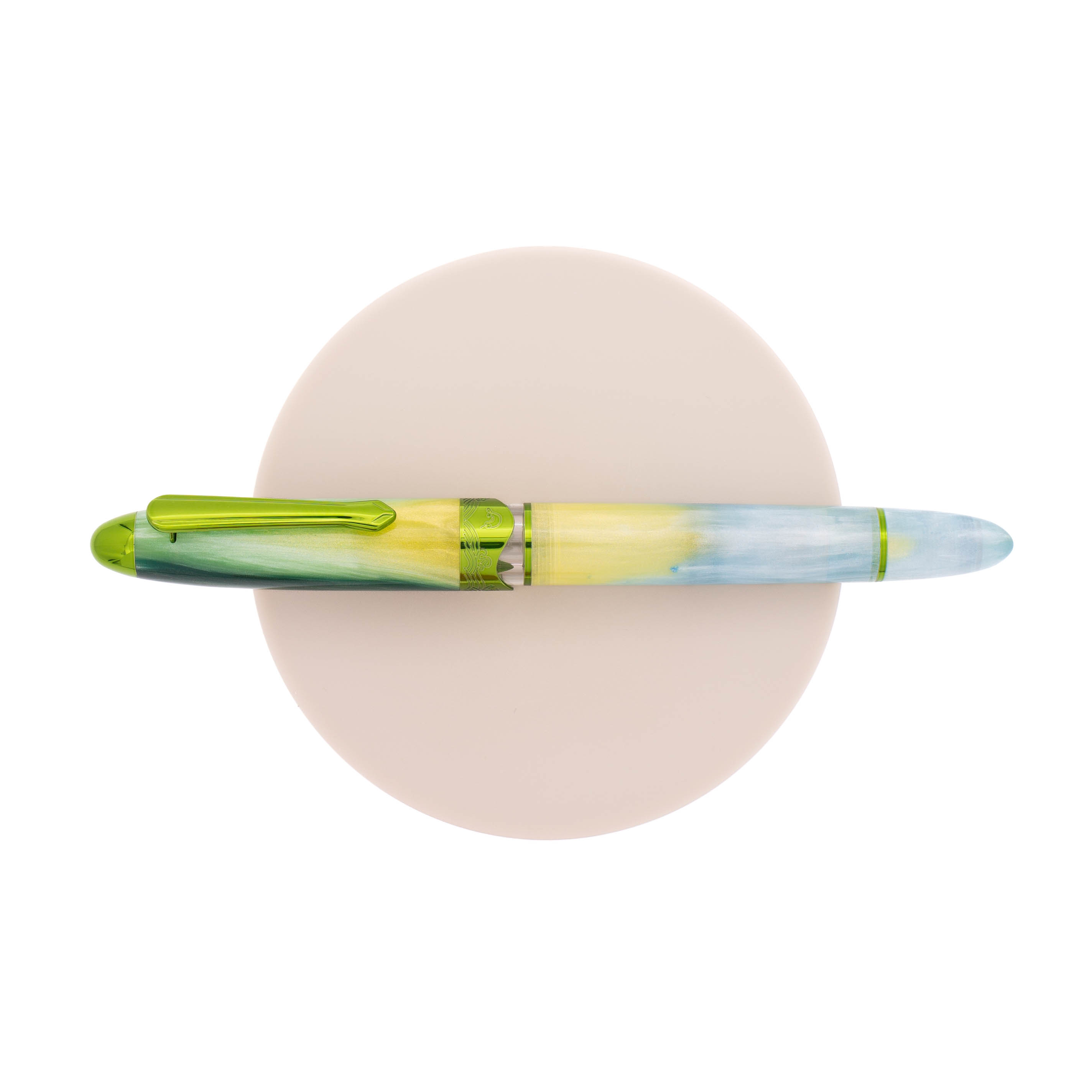 Nahvalur Horizon Gaia è stata realizzata in occasione del 2024 Earth Day come omaggio alla bellezza mozzafiato del nostro pianeta. La penna stilografica presenta una miscela di tonalità blu, verdi e gialle, che ricordano gli elementi vivificanti della Terra.