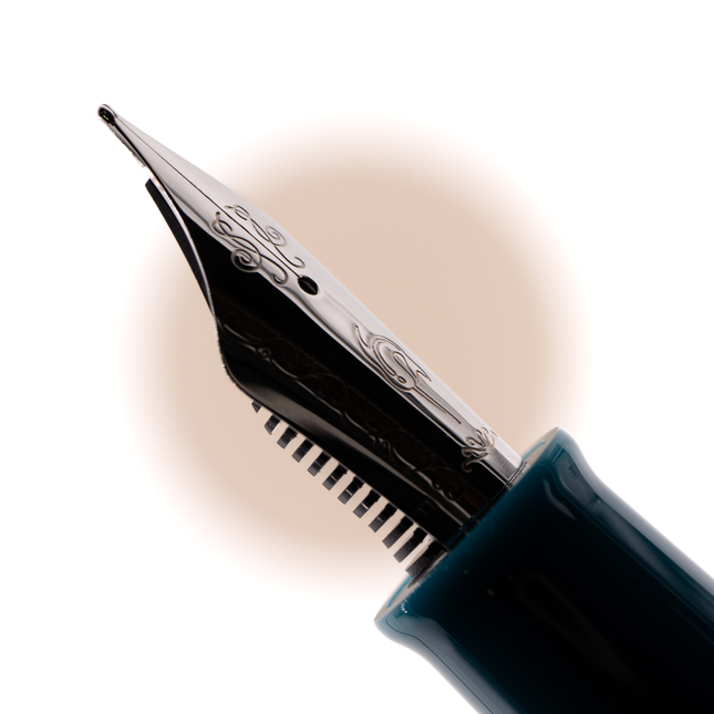La Nahvalur Nautilus Dracula è equipaggiata con un pennino in acciaio e adotta un sistema di caricamento a stantuffo, che garantisce una generosa capacità d’inchiostro e un flusso costante durante la scrittura. Un connubio perfetto tra tecnica, immaginario e collezionismo.