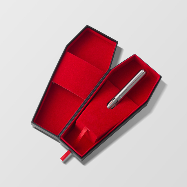 L’atmosfera drammatica del tema “Dracula” è ripresa anche nel packaging, che presenta una confezione speciale pensata per creare un effetto teatrale di apertura, come se la penna emergesse dalla sua tomba. Ogni dettaglio è concepito per offrire un’esperienza unica, dal design al momento dell’unboxing.