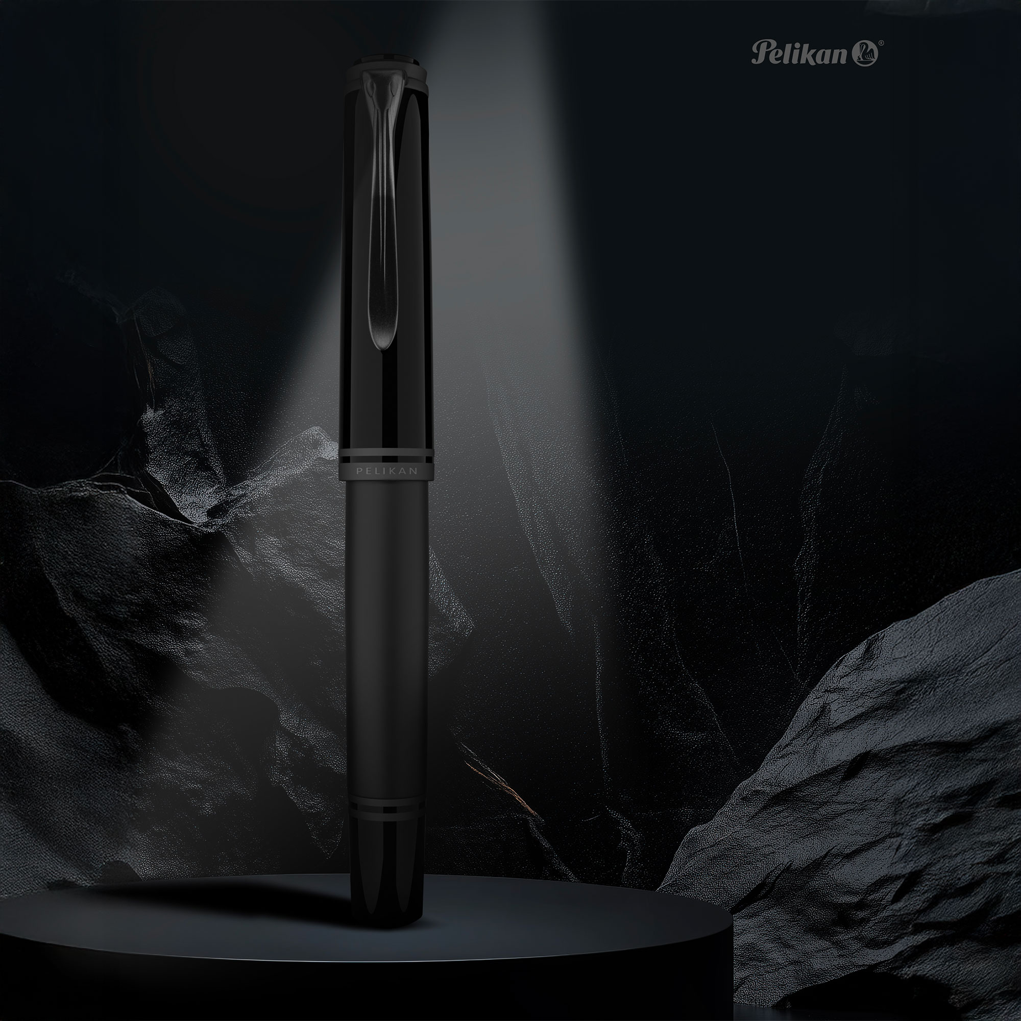 La Pelikan Souverän M809 Black Matt è una speciale edizione dal fascino total black, con corpo e cappuccio in resina preziosa e metallo satinato, pennino in oro 18 carati e finitura opaca dal tocco morbido.