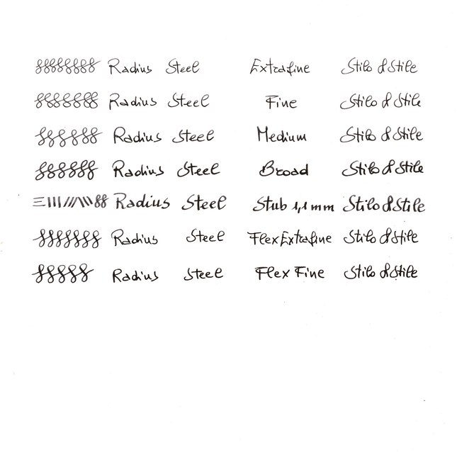 Ogni esemplare della Radius x Stilo&Stile Settimo Radici è realizzato a mano in Italia, inciso con “Radius x Stilo&Stile” e il numero di serie sul cappuccio. La penna è dotata di un pennino in acciaio #6 e sistema di caricamento a cartuccia/converter ad attacco standard internazionale.