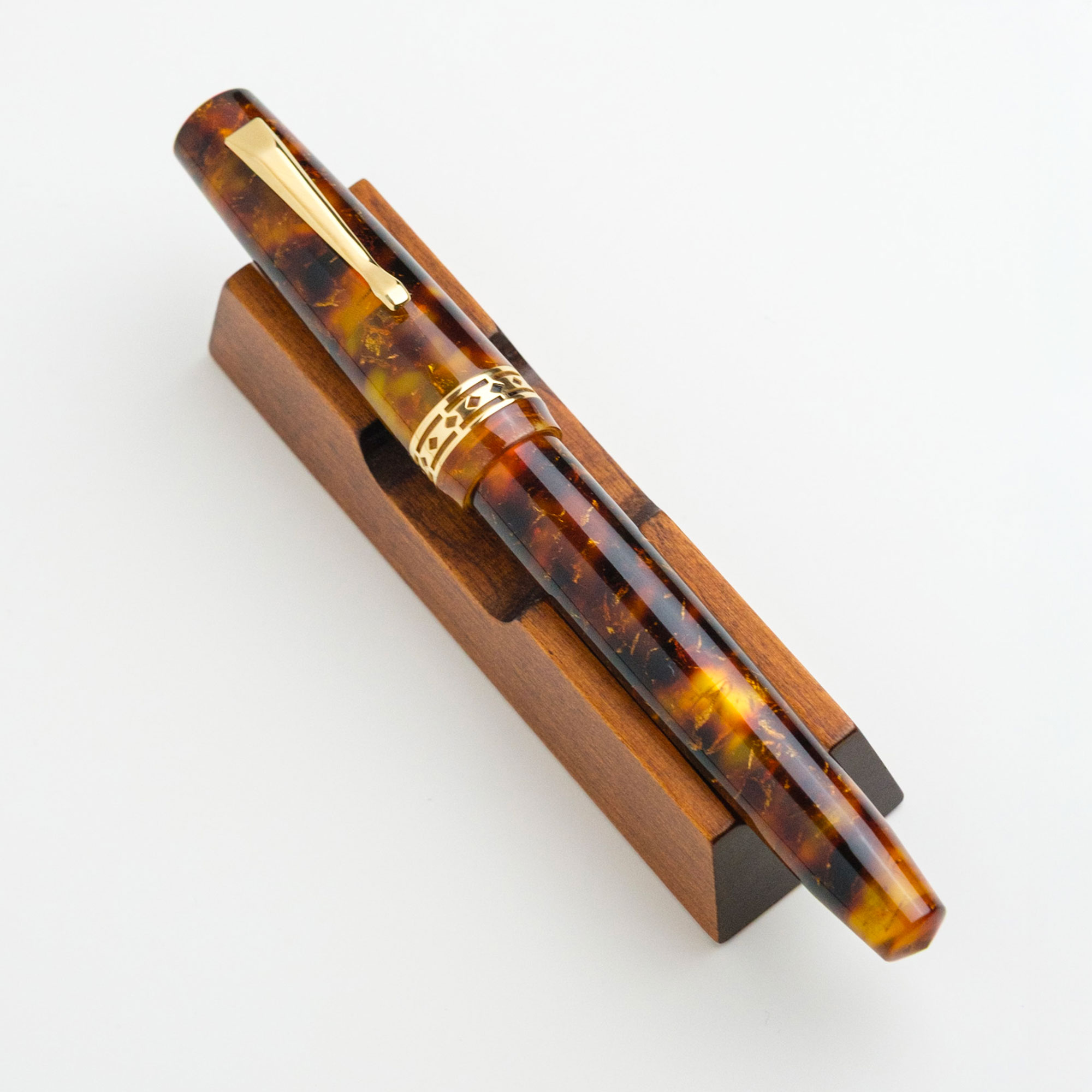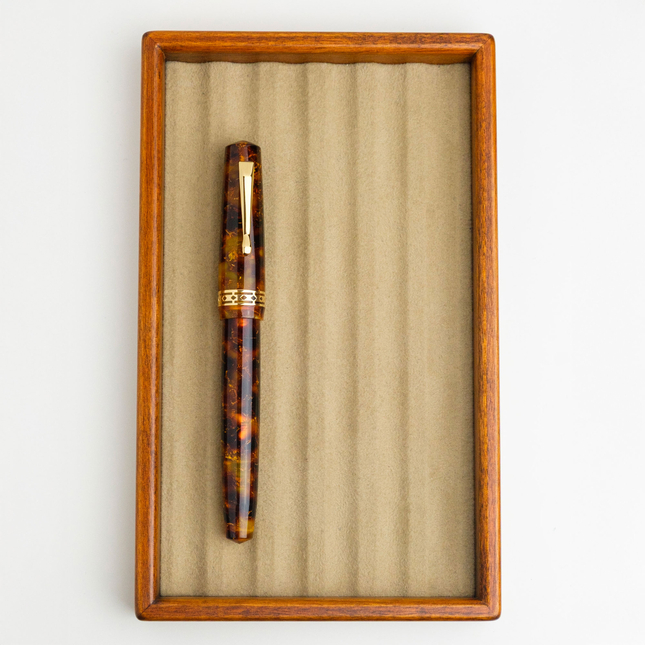 Per la prima volta tra tutte le nostre edizioni esclusive, abbiamo scelto di realizzare una resina classica ispirata ai materiali delle penne vintage. Un tartarugato tradizionale, caldo e senza tempo, che si sposa perfettamente con il design della Radius Settimo. È un omaggio alle radici del nostro settore e ai colori che hanno segnato la storia della penna stilografica.
