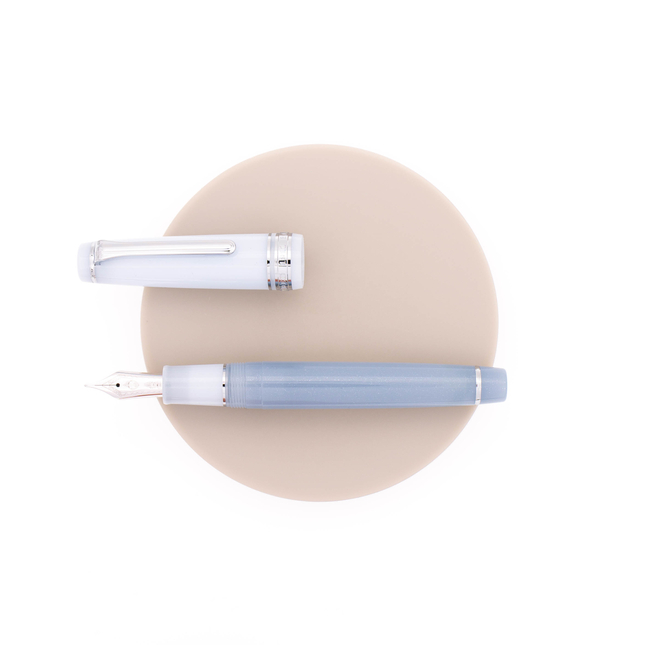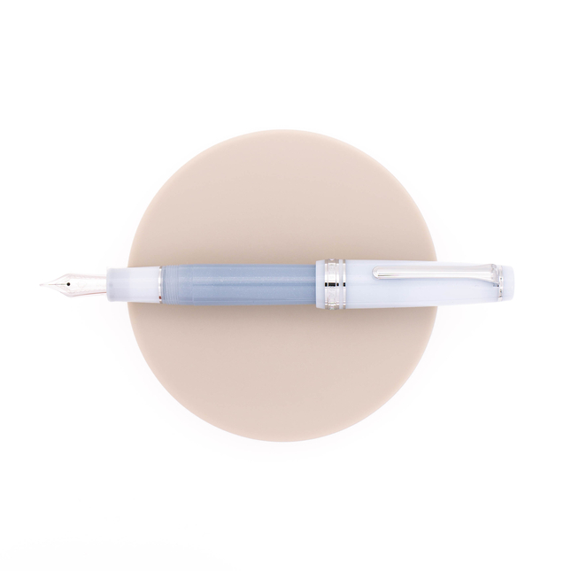 Sailor Professional Gear Smoothie Blue Moon presenta una combinazione di due tonalità di blu/viola con elementi metallici placcati rodio. Immergiti nelle profondità di un calmante blu che ricorda un fresco frullato di mirtilli.