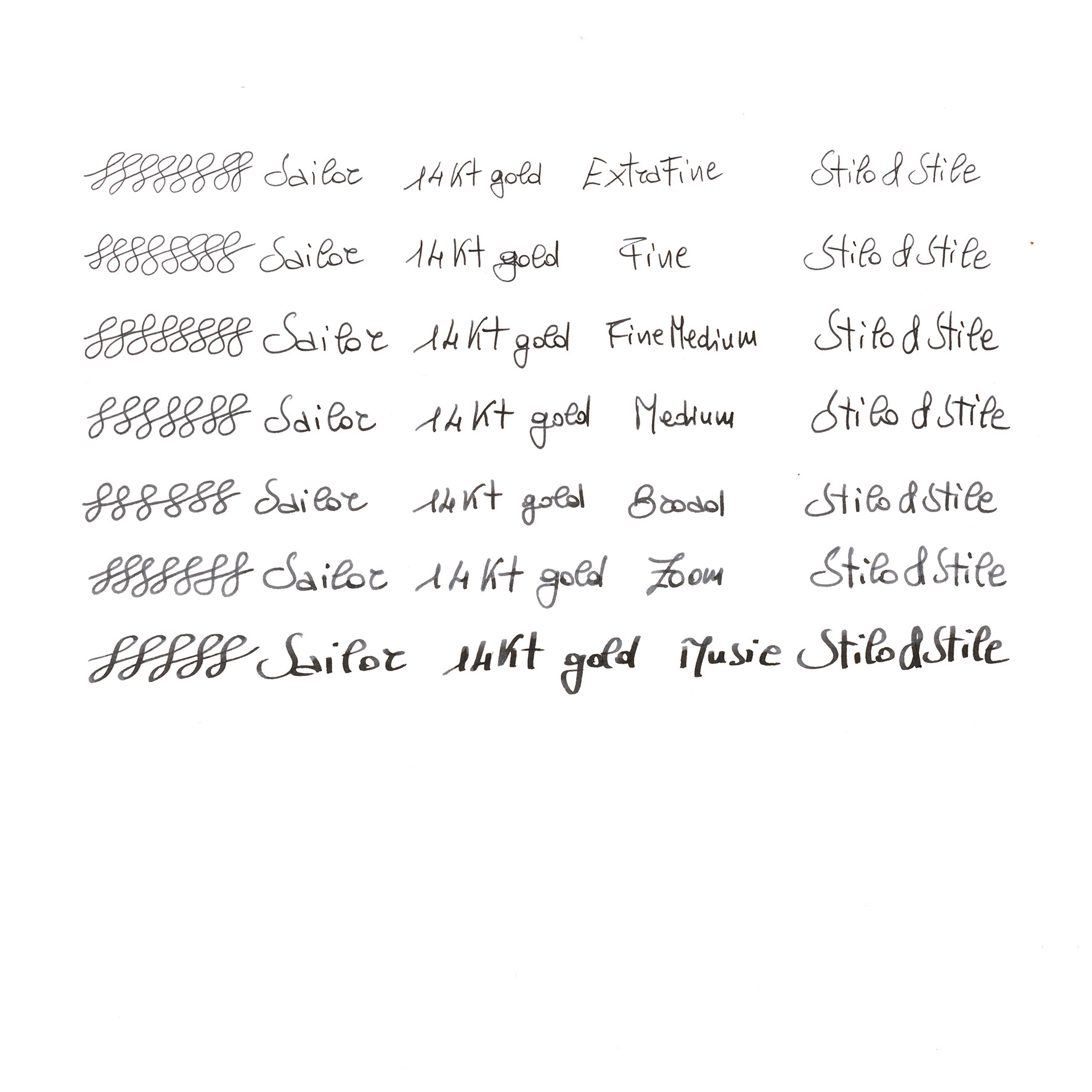 Il cuore della penna è il pennino in oro 14 kt Sailor, apprezzato per la precisione e il controllo del tratto, capace di restituire una scrittura fluida e ricca di carattere. Il sistema di ricarica utilizza cartucce e converter Sailor, con converter incluso nella confezione.