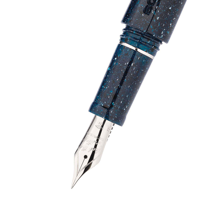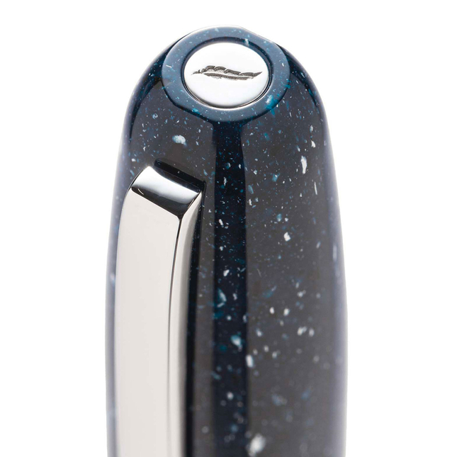 Realizzata in resina blu notte, questa stilografica evoca il cielo stellato nelle notti limpide. Ogni dettaglio è pensato per catturare la profondità dello spazio: le finiture in palladio brillano come stelle lontane, mentre il corpo sembra attraversato da una mappa celeste segreta.
