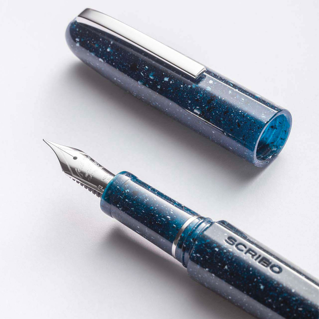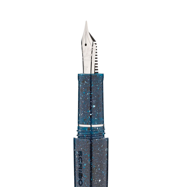 Una stilografica che guarda il cielo e ne cattura la meraviglia. Scribo Piuma “A Riveder le Stelle” è ispirata all’ultimo verso dell’Inferno di Dante: resina blu notte, finiture in palladio, pennino in oro 18k (oppure 14k Flex), alimentatore in ebanite. Edizione limitata a 219 pezzi.