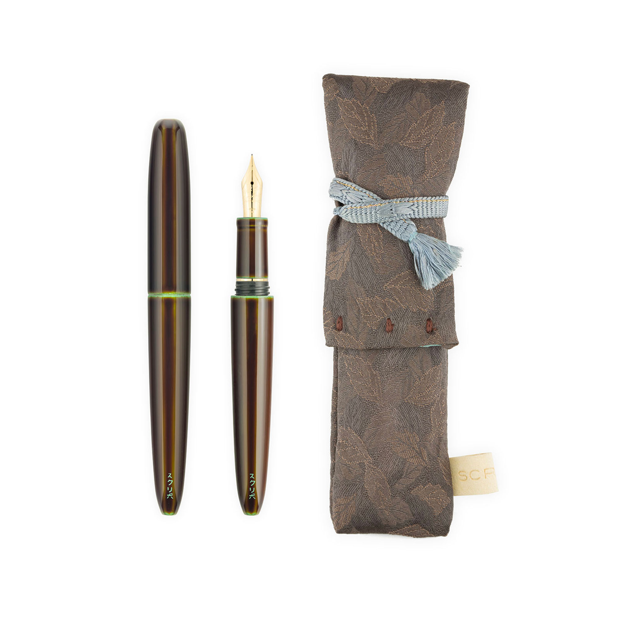 Ogni penna è impreziosita dalla firma in caratteri Katakana, realizzata a mano, che suggella l’incontro tra la maestria giapponese e la visione Scribo. Un dettaglio discreto ma essenziale, simbolo di autenticità e artigianalità.