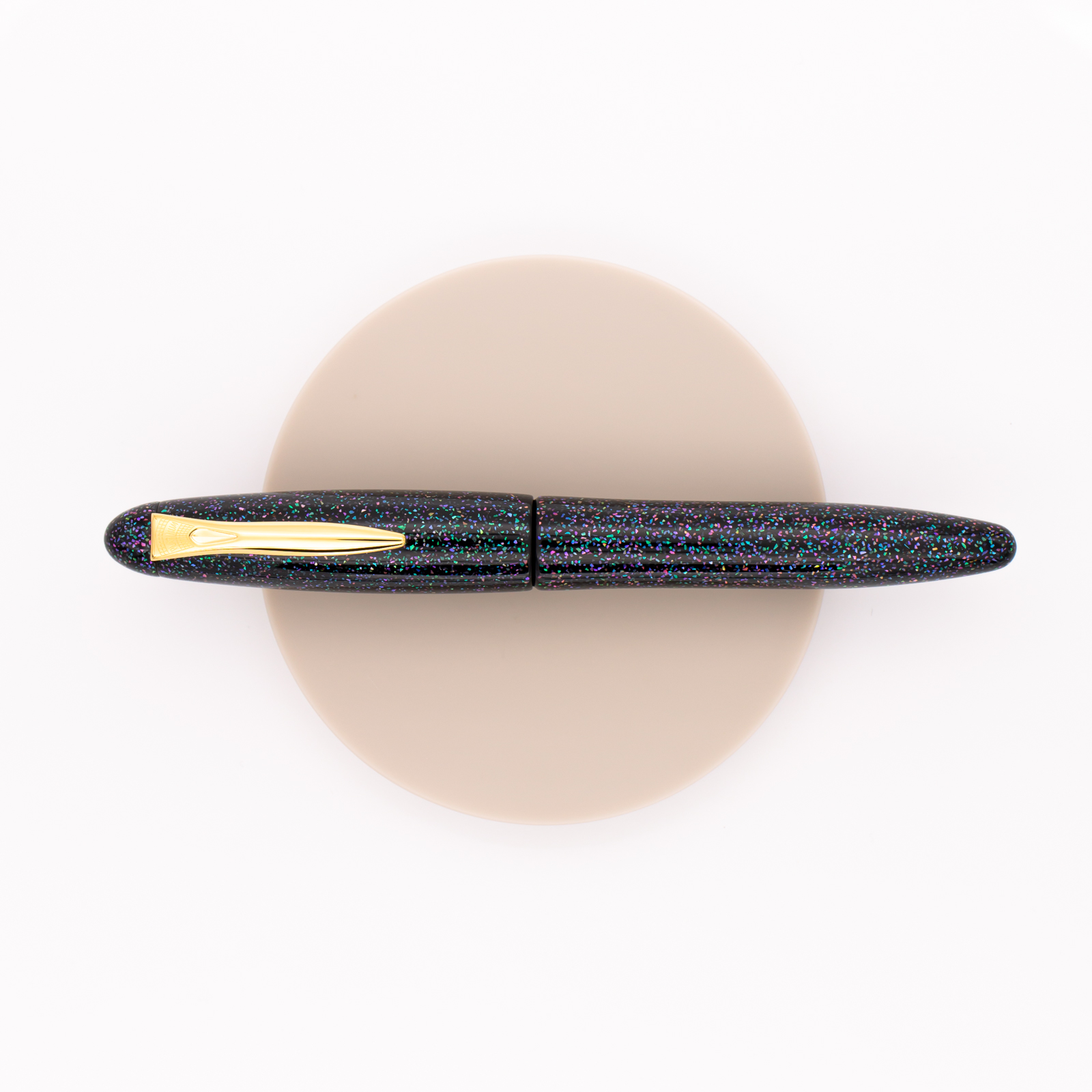 Realizzata interamente in ebanite, Platinum Izumo Raden Galaxy è divinamente decorata con piccole parti di conchiglia Abalone finemente ritagliate ed applicate secondo schemi di colore ben precisi che creano un effetto "Galassia" sulla penna stilografica.
