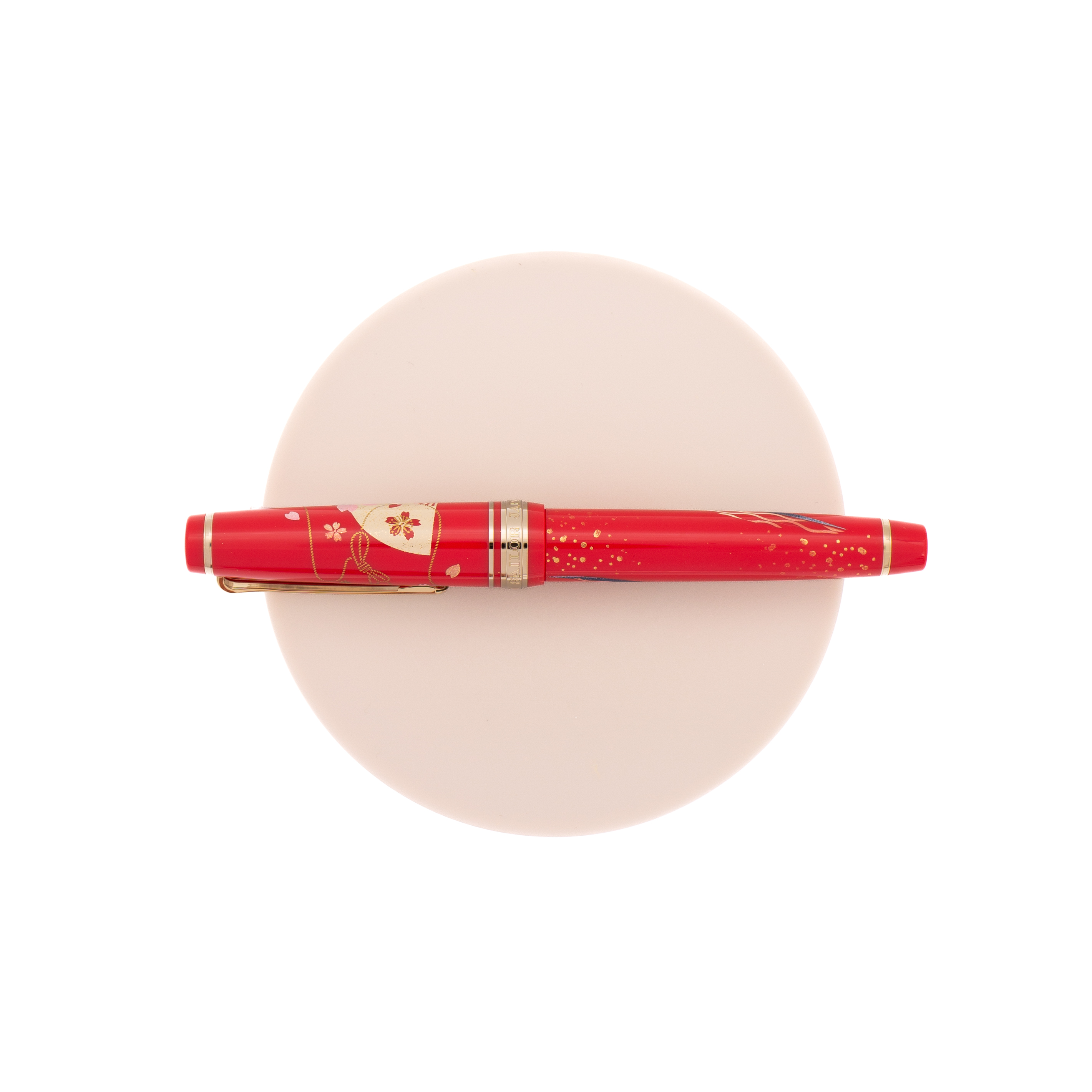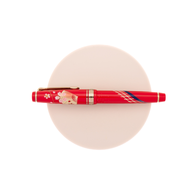 Sailor presenta una collezione di penne stilografiche caratterizzate da motivi legati al kimono giapponese e decorate con la tecnica "Yuubi Maki-e". Sailor Professional Gear Slim Kimono Prosperity combina motivi di buon auspicio sul cappuccio con il colletto del kimono sul fusto.
