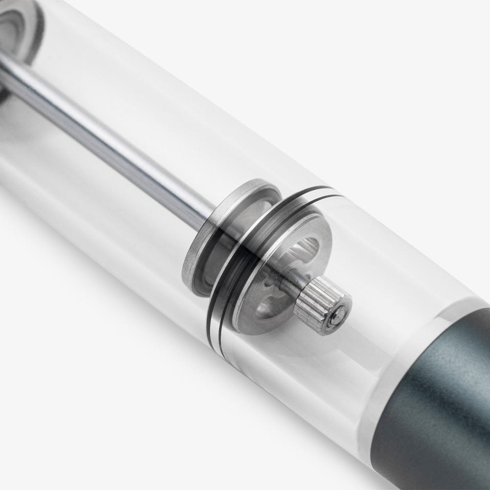 La scrittura è affidata a un pennino in acciaio misura 8, abbinato a un conduttore in ebanite che assicura un flusso regolare, controllato e reattivo. Il pennino è disponibile nelle misure Extra Fine, Fine, Medium e Broad.