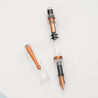Nahvalur Original Summer presenta un corpo in resina trasparente con finiture metalliche placcate in un arancione ramato brillante. Una finitura rara da vedere su una stilografica che richiama le calde tonalità estive.