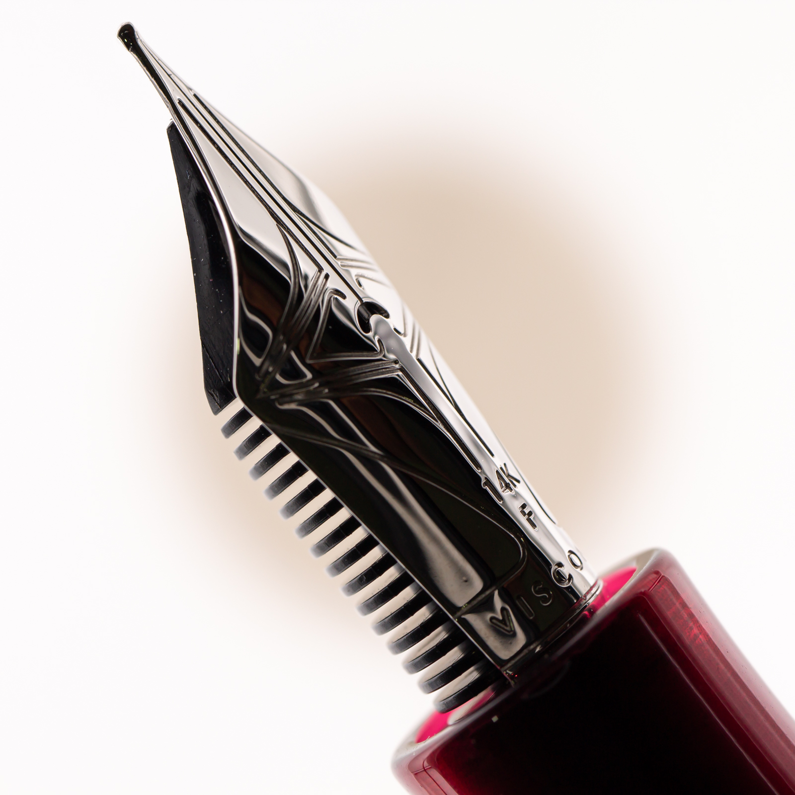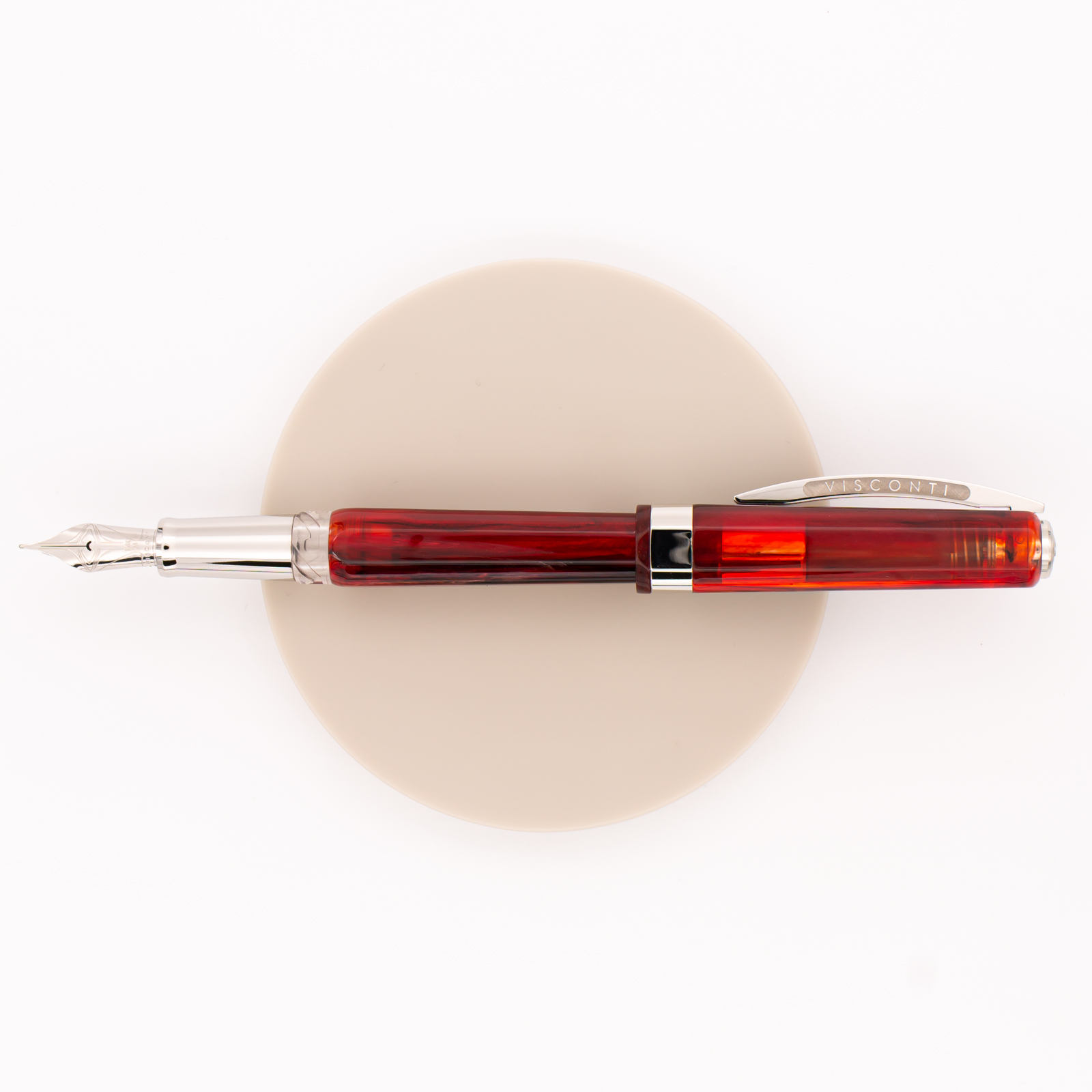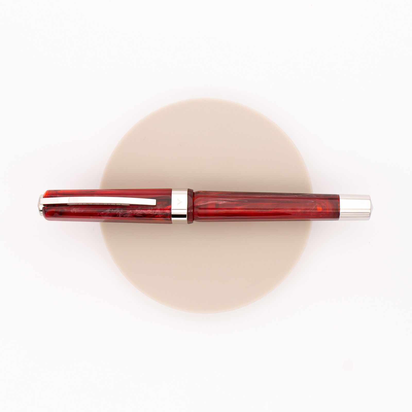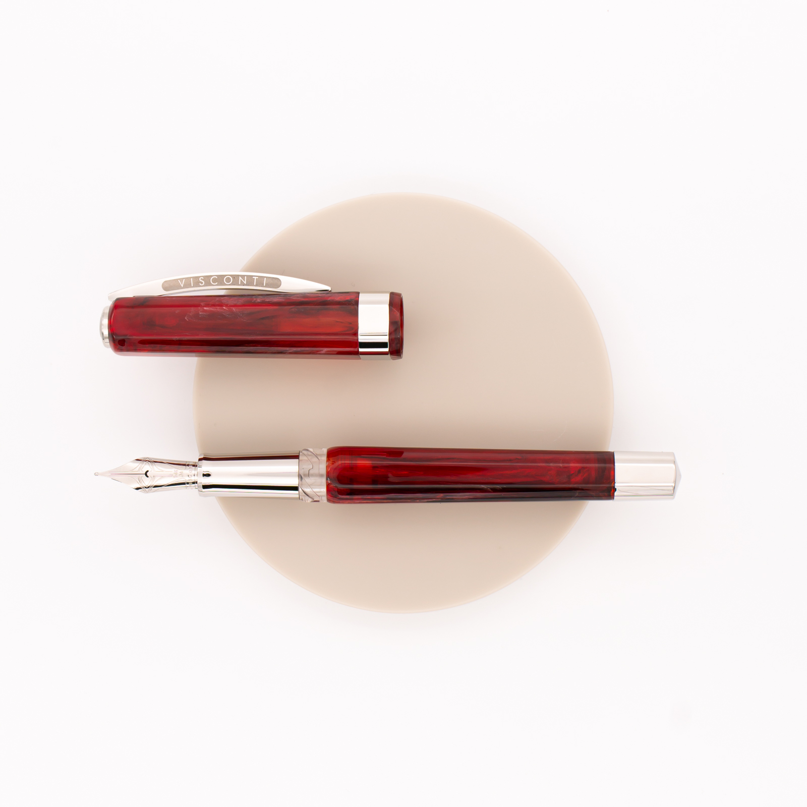 Visconti Opera Demo Carousel Red Velvet è la penna stilografica semi-trasparente con il particolare design definito "la quadratura del cerchio". Double Reservoir Power Filler e pennino in oro 14 KT.