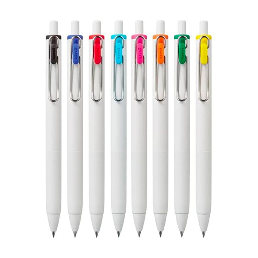 Set di 8 penne gel Uni-ball One 0.38 mm con inchiostro pigmentato e tratto fine e preciso. Una soluzione pratica e affidabile per la scrittura quotidiana.