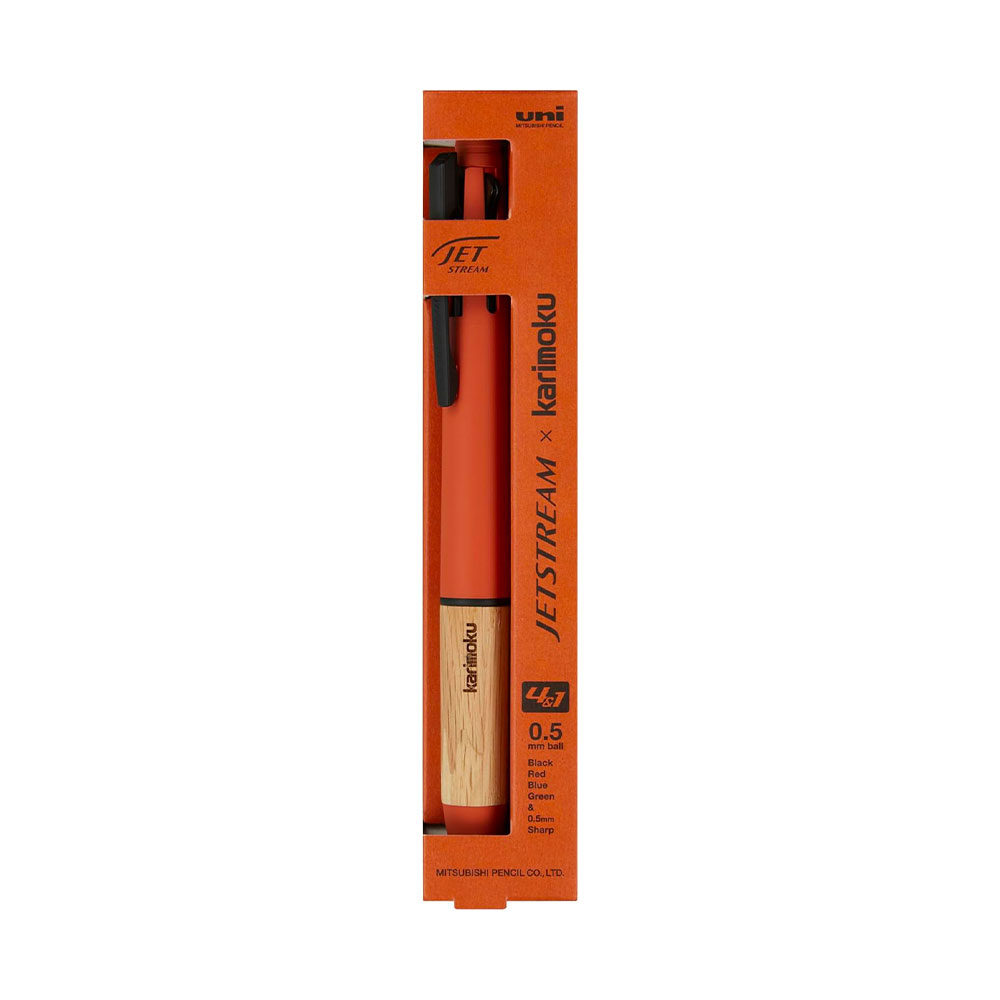 La Uni Jetstream x Karimoku 4&1 Sunset Orange è una penna multifunzione che unisce quattro penne a sfera e una matita meccanica in un unico strumento elegante e versatile. Il colore caldo Sunset Orange incontra l’inserto in legno Karimoku, mentre l’inchiostro Jetstream assicura una scrittura fluida e scorrevole ogni giorno.