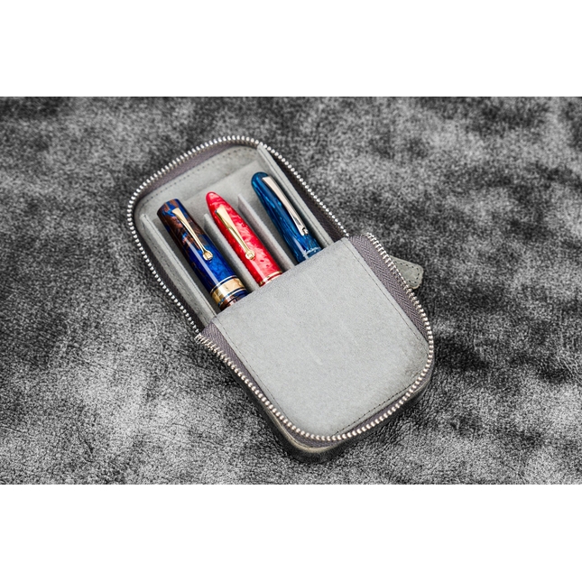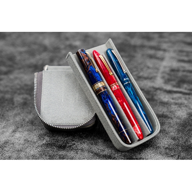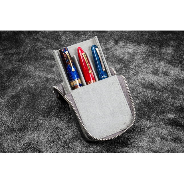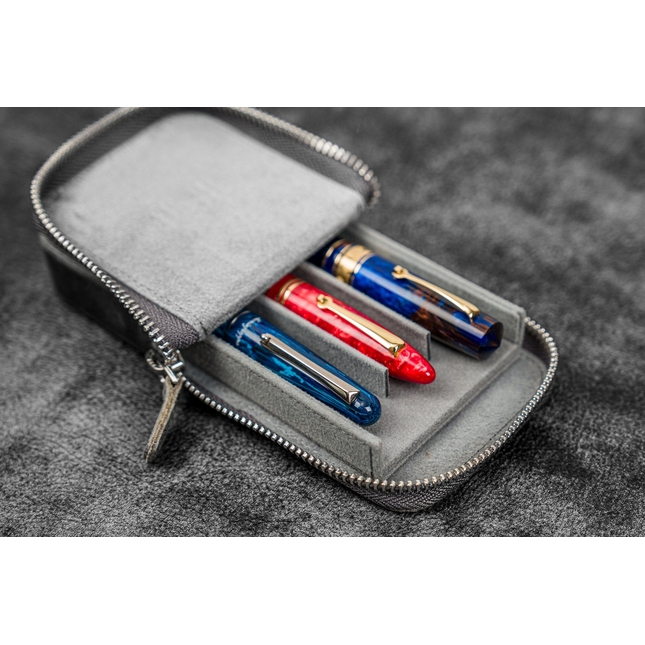 Galen Leather Magnum Opus Crazy Horse Smoky Grey è un portapenne in pelle da 3 posti caratterizzato da un vassoio rimovibile che offre facile accesso alle tue penne. I dodici scomparti del vassoio sono rivestiti in morbido velluto per evitare i graffi.