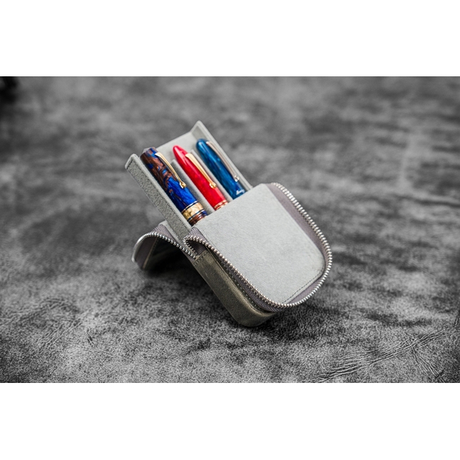 Galen Leather Magnum Opus Crazy Horse Smoky Grey è un portapenne in pelle da 3 posti caratterizzato da un vassoio rimovibile che offre facile accesso alle tue penne.