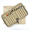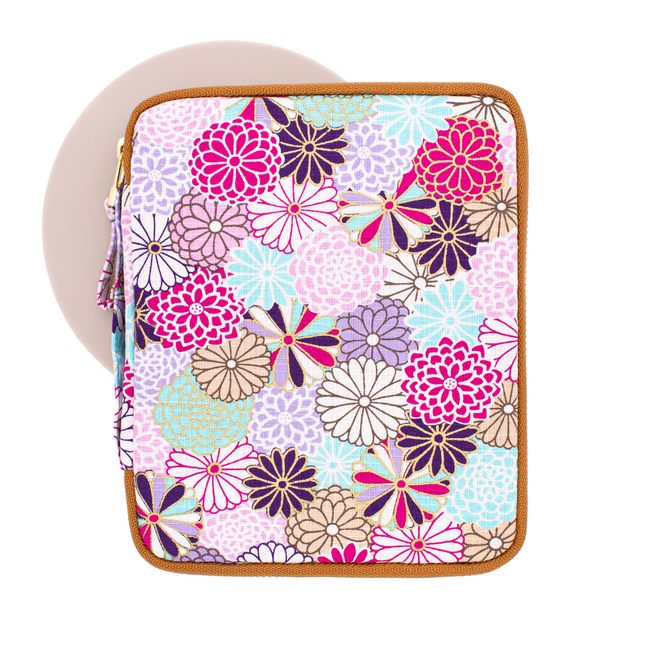 Il portapenne Kyoku Haku Dahlia Rosa è realizzato in tessuto all'esterno e pelle scamosciata all'interno. Può contenere fino a 10 penne con dimensione fino a 150 mm.