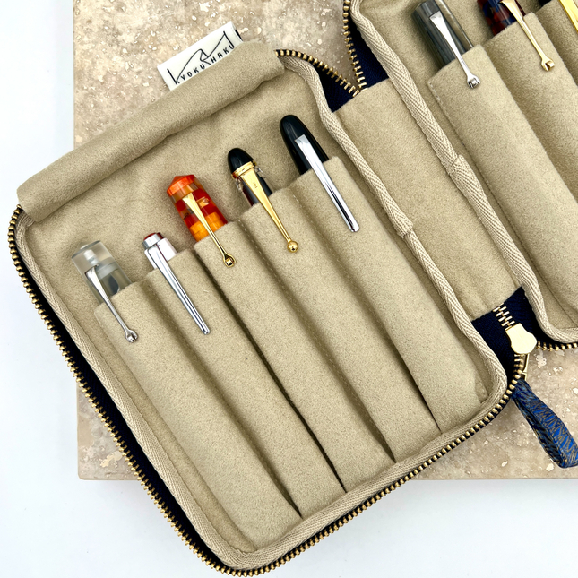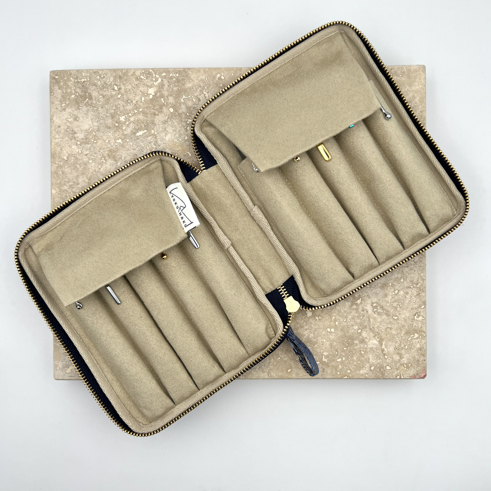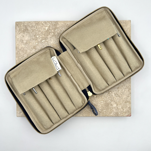 L'interno in pelle scamosciata presenta una cucitura che evita il contatto tra le penne mantenendole quindi al sicuro e garantendoti totale sicurezza sia nel trasporto che nella custodia.