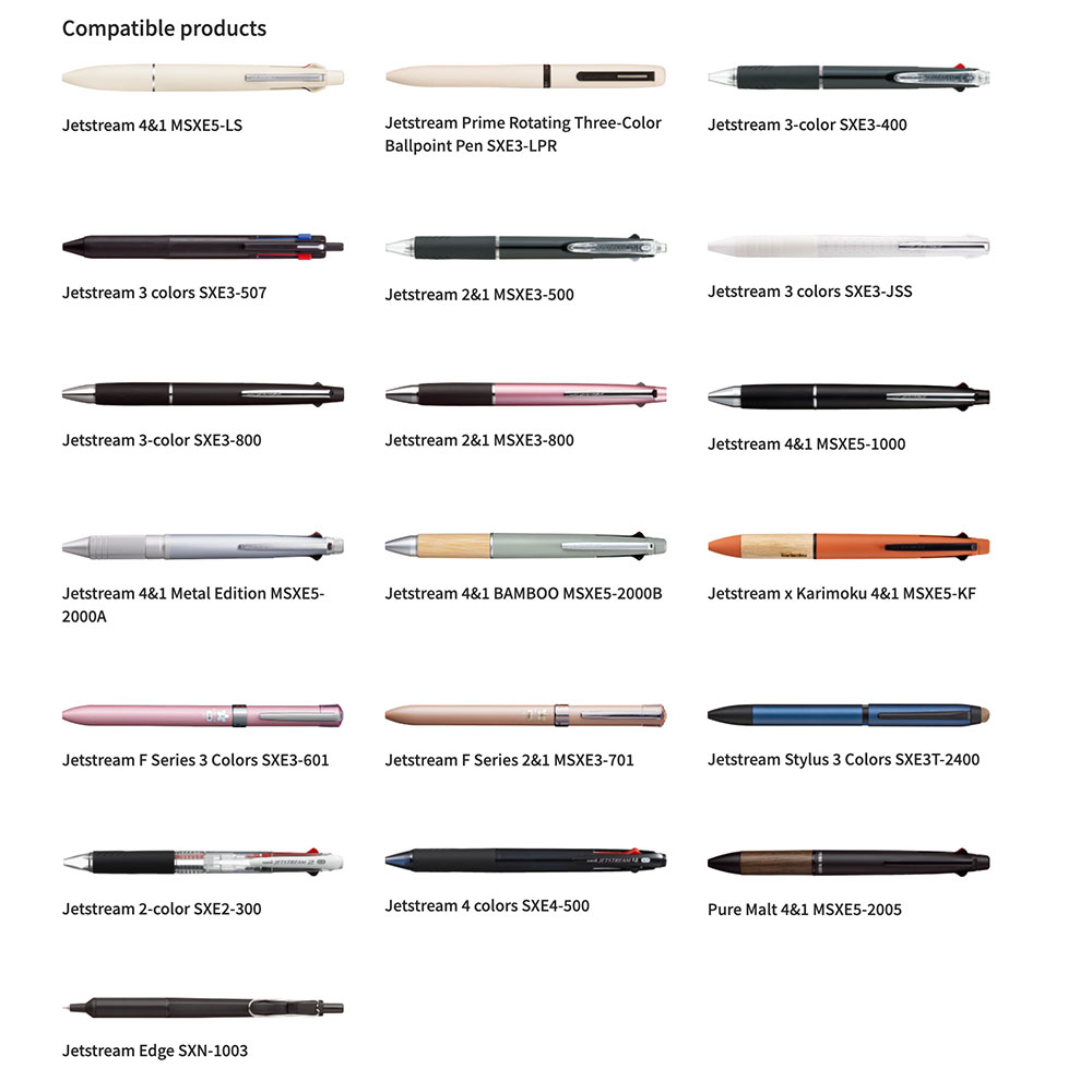 Questo refill è disponibile nei colori nero, blu, rosso e verde, permettendo di sostituire facilmente la ricarica originale e di mantenere la piena funzionalità delle penne multifunzione compatibili.