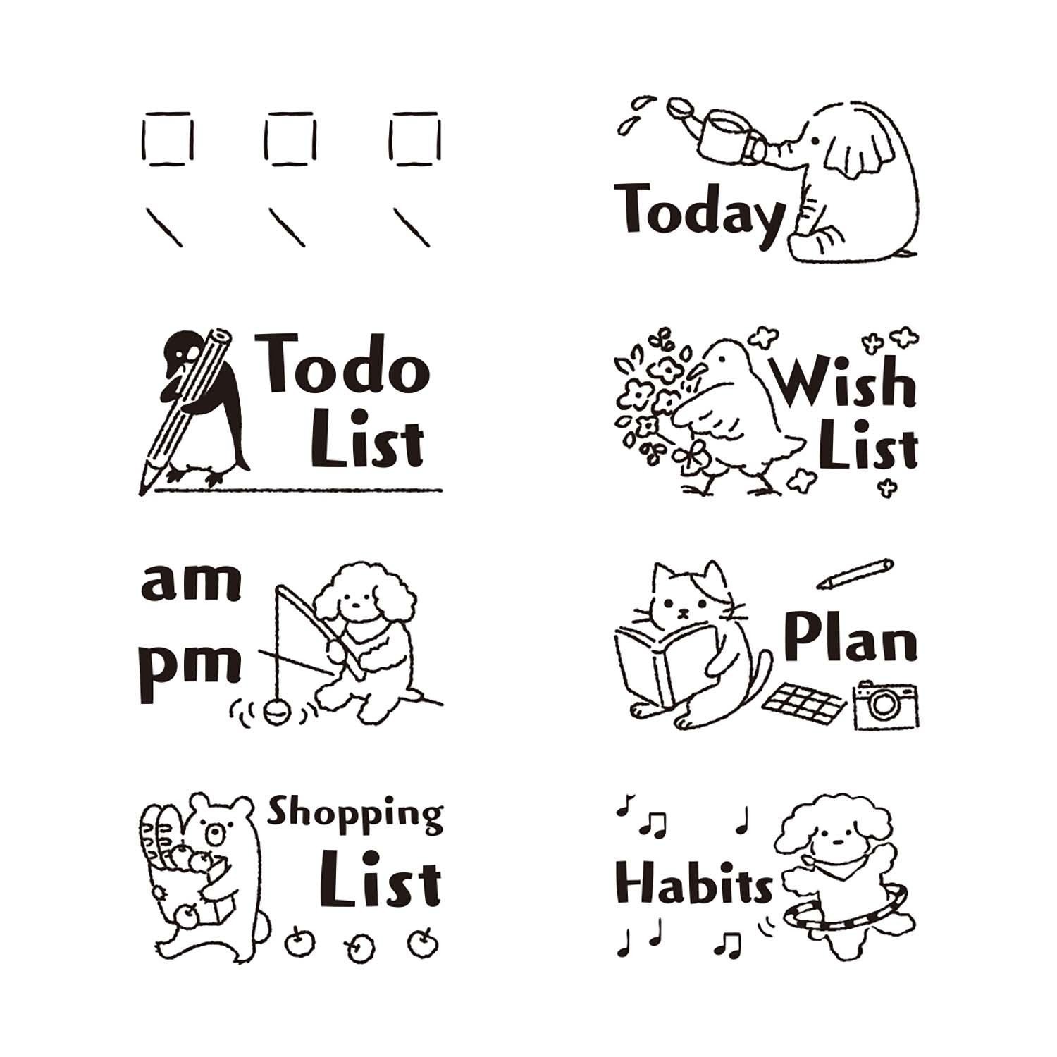 La serie List propone titoli utili come TO DO LIST e WISH LIST, accompagnati da adorabili illustrazioni di piccoli animali, perfetti per attività di pianificazione, bullet journaling e gestione delle attività quotidiane. Le linee sottili e i dettagli, difficili da ottenere a mano libera, vengono riprodotti in un solo gesto con grande precisione.
