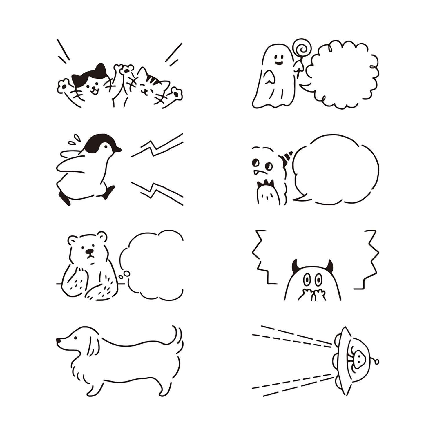 La serie Speech Bubble propone una selezione di fumetti e balloon illustrati con animali, piccoli mostriciattoli, fantasmini e alieni, per un effetto divertente e altamente espressivo. Ogni motivo è perfetto per aggiungere messaggi, titoli brevi, appunti rapidi o commenti creativi alle tue pagine, trasformando subito l’atmosfera del tuo diario.