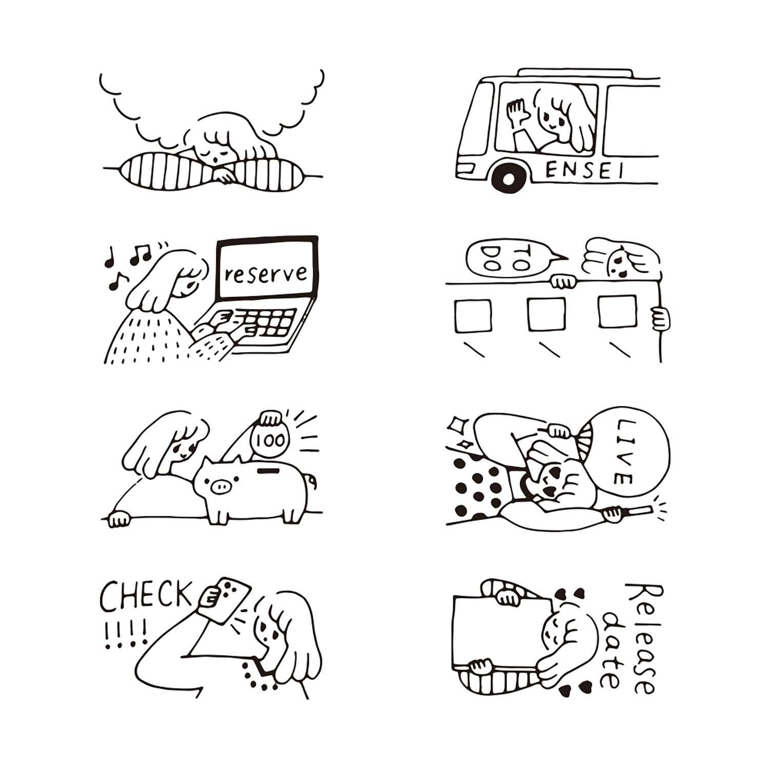Il Midori Timbro Girevole Supporting My Favorite è pensato per celebrare passioni, hobby e tutto ciò che ami seguire con entusiasmo. Grazie al meccanismo rotante, puoi scegliere tra otto motivi dedicati al mondo dell’“oshi-katsu”, la tendenza giapponese legata al supporto dei propri artisti, gruppi o personaggi preferiti. Ogni illustrazione rappresenta momenti tipici di questa attività, perfetti per annotare eventi, concerti, live, uscite e ricordi speciali.
