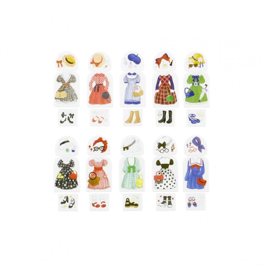 Un washi tape con adesivi singoli ispirati alla moda del cinema retrò. Combina abiti e accessori per creare ogni giorno un outfit diverso, elegante e pieno di personalità.